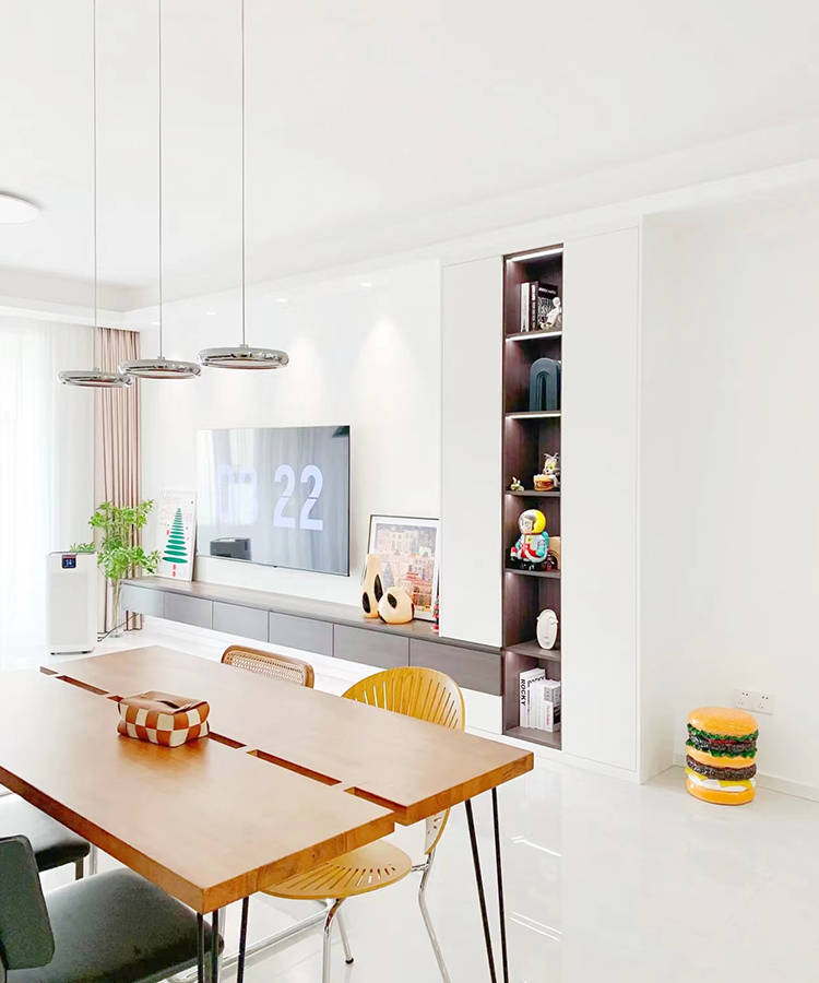 1、定制电视柜做L型,既不会显得空间拥挤,且也拥有了足够的储物空间