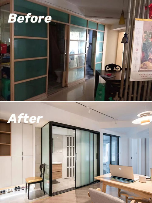 局部改造:就是哪里不好整哪里,如果对原始房型结构、功能都能够接受,只是对表面装饰风格或者局部破旧面要求改造的话。可以选择不动原始墙体结构、保留原始隐蔽工程(水电),只需要对表面进行翻新。最担心的就是破坏了其它需要保留的地方导致成本和工程量增加!