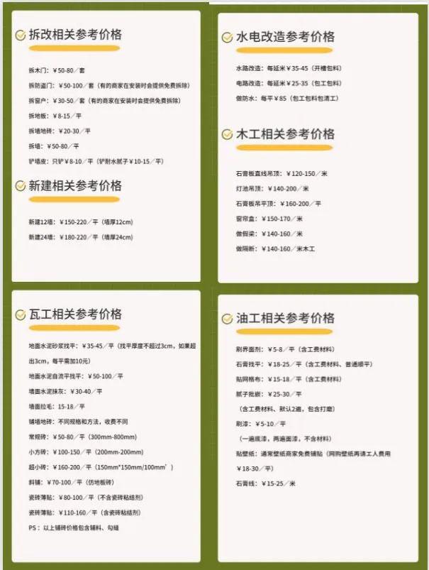 旧房原有墙面、地面、吊顶(或局部翻新的部分)需要全部拆除的,就要彻底铲除清理墙皮、墙砖饰板等,直至变成毛坯墙;由于拆除的面积较大、清理的时间长,所以成本自然要高。