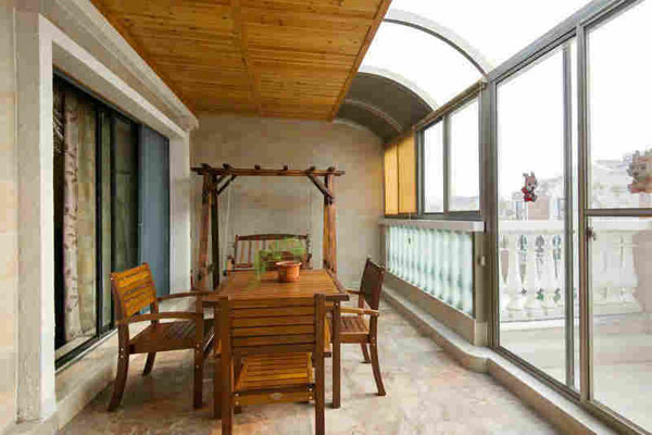 热衷茶道的人们,对于自己拥有品茶论道专用空间的期许不言而喻,将阳台变成茶室便可满足这个愿望。西安墙面处理改造设计师用砖块壁纸铺贴阳台墙面,布置一个单人为小沙发、一个小茶几,阳台仿佛变成一个独立的小茶坊。阳光微微透进来,躺着品茶该是多么惬意。散发木质清香的榻榻米,布置上精美的盆景,配上精致的品茶道具,阳台立刻变身成享受日光、放松心情的最佳场所。